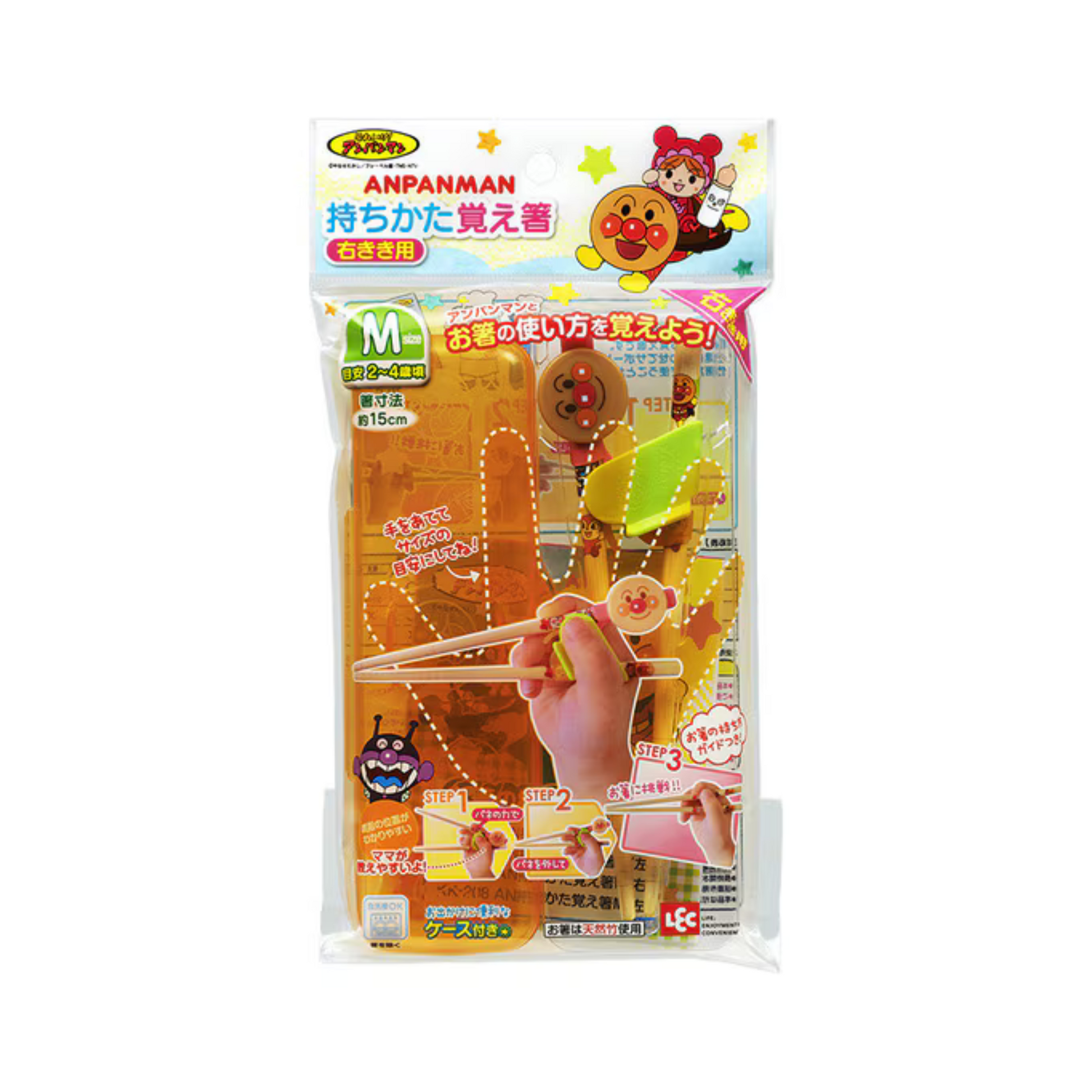 LECのアンパンマントレーニング箸は、2〜4歳の右利きの子ども向けに設計されています。