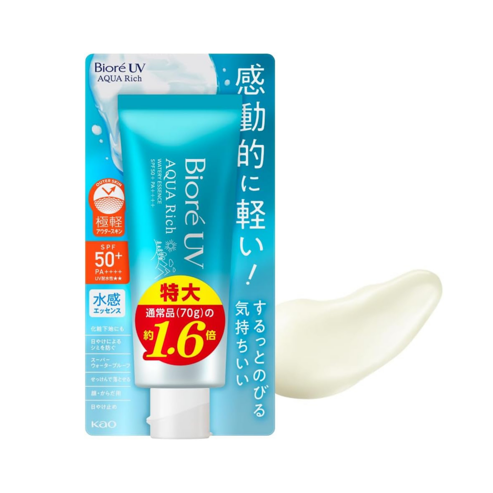 Kao’s cult-favorite sunscreen delivers hydrating UV protection with its signature “Aqua Micro Capsules” that burst on application.