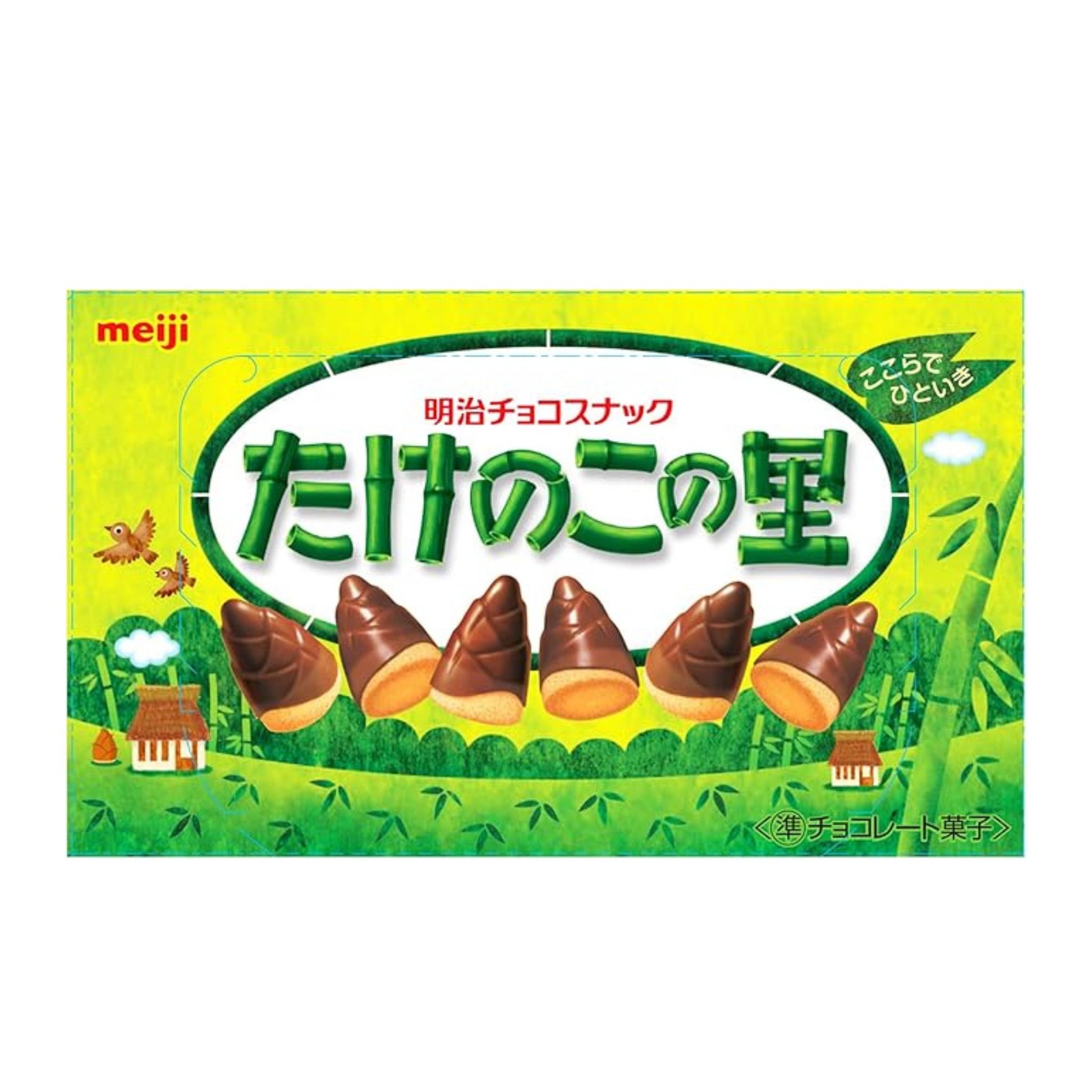Meiji’s Takenoko no Sato features crunchy cookie bases topped with smooth chocolate in a unique bamboo shoot shape. A beloved Japanese snack perfect for tea time or gifting.