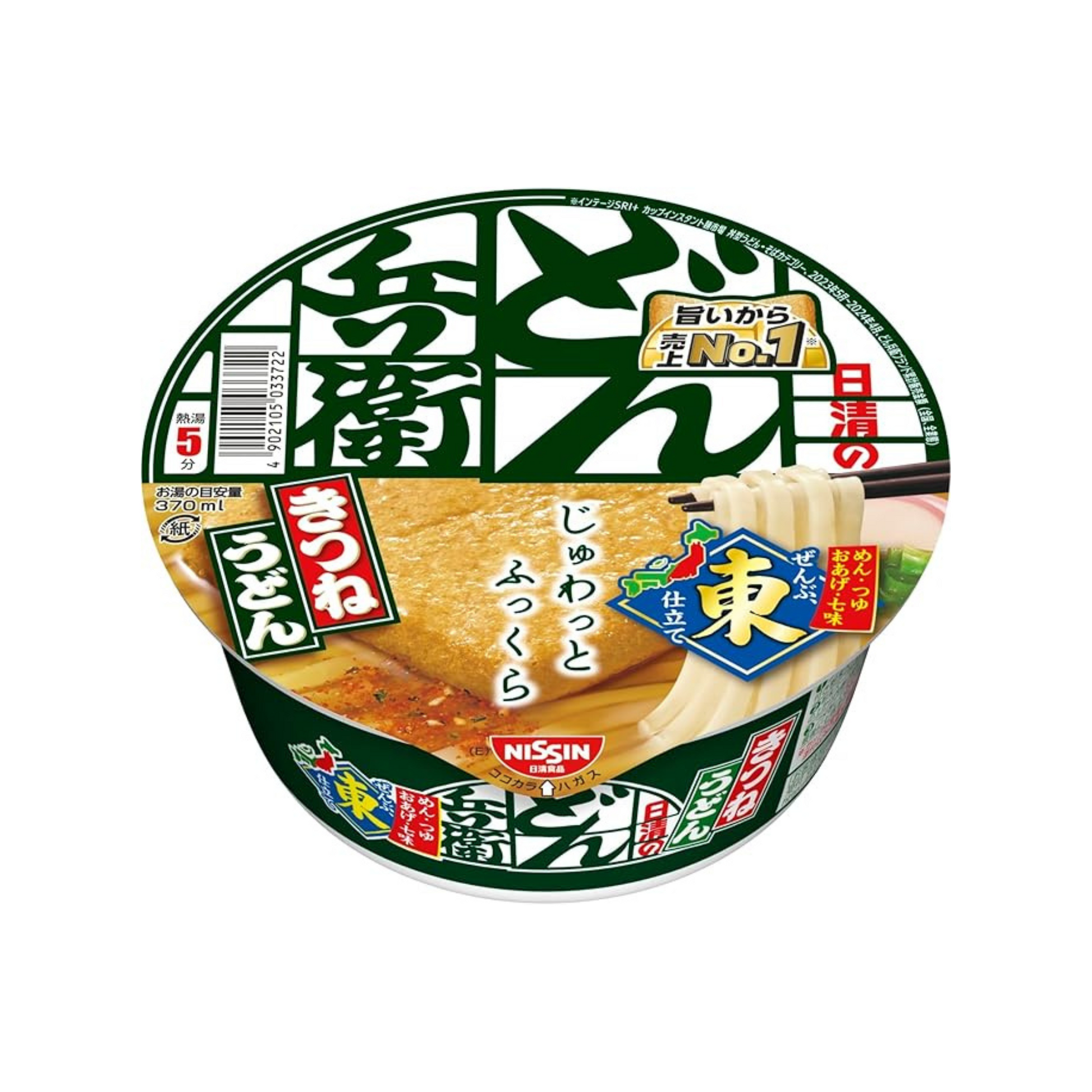 Nissin’s Donbei Kitsune Udon (East Japan style) features chewy udon noodles in a rich soy-and-dashi broth with double bonito stock made from true bonito and Sōda bonito.