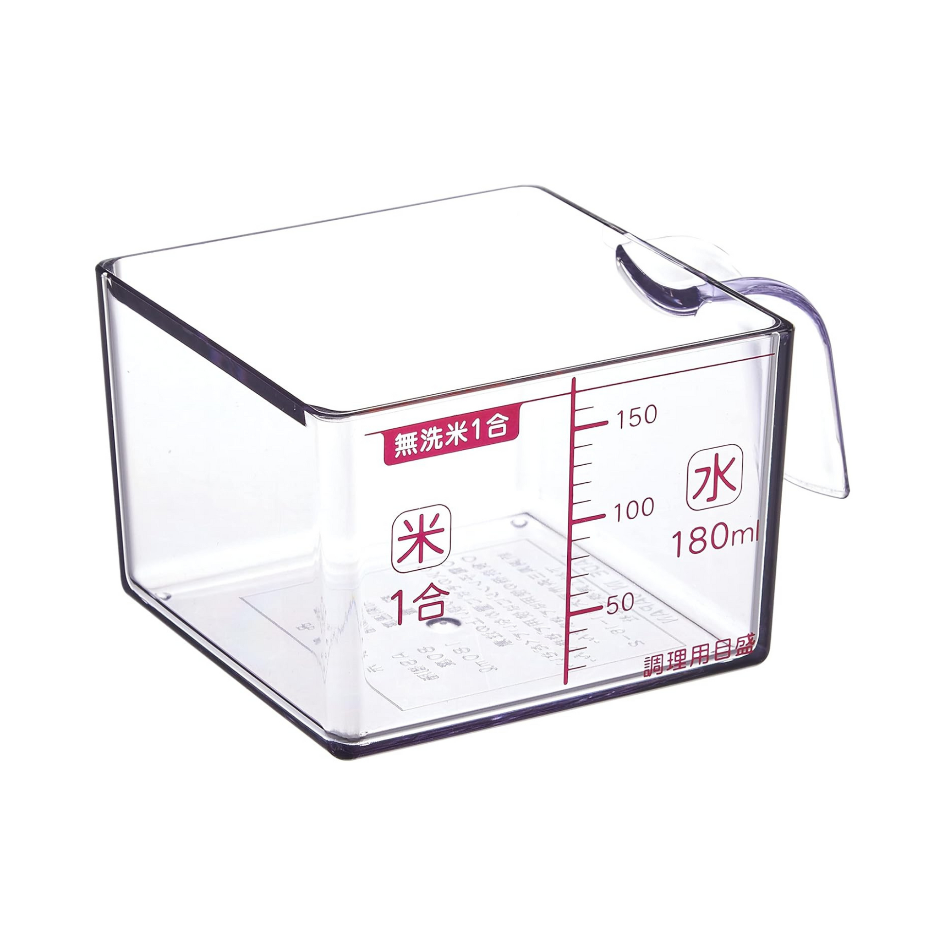 The Square Rice Measuring Cup from Shimomura Industrial is a high-quality kitchen tool, made in Japan. It is designed with graduations for both standard rice (to be washed) and musenmai (pre-washed rice). Its square shape makes it easy to reach into the corners of rice storage bins, while the angled front edge allows smooth, spill-free scooping. Clear markings in 10 mL increments, including a red line for quick visibility, ensure accurate measurement every time. Made from durable AS resin, this cup is ideal for precise rice measurement and versatile kitchen use.